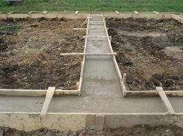 Починаючи з другого ряду, кладка відбувається з використанням спеціального клеїв розчину, Який треба розвести Відповідно до інструкції виробника. При застосуванні цього клею шов виходить не більше 3 мм, що забезпечує кращу теплозахист. Для нанесення розчину краще всього використовувати зубчасті ківш. Наступним етапом є створення арматурного поясу, Який роблять прямо на стіні. На стіну на шаблони з дерева укладають арматурні прути, Які зварюють і вирівнюють по осях. За допомогою сварки з куточками додатково скріплюють в стику стін каркаси. У плиті фундаменту для проміжної опорної стінки свердлять отвори для арматури, в Котрі забувають стрижні, до яких підв'язують горизонтальну арматуру. Для того для нігтів зміщення дротом і дерев'яними клини решітку арматури встановлюють по виска і закріплюють. Далі прибивають дошки опалубки, Які ізольовані плівкою, на встановлені на торці брусків. Заливають бетон і чекають до повного висихання. Бетон укладається по периметру стін в незнімну опалубку. Зверху проміжної стінки укладається перекриття з балок, зверху арматура і все бетонується.